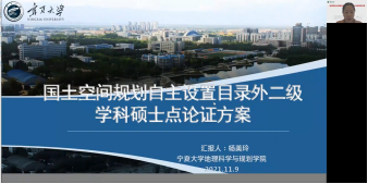 国土空间规划论证会由李同昇教授任组长。专家组一致认为宁夏大学新增国土空间规划硕士点顺应了国家黄河流域生态保护和高质量发展战略需求,满足自然资源领域和行业对高层次人才的迫切需求,具有鲜明的地理学特色,现有基础条件和专业发展规划具有可行性,可以增设国土空间规划硕士点。