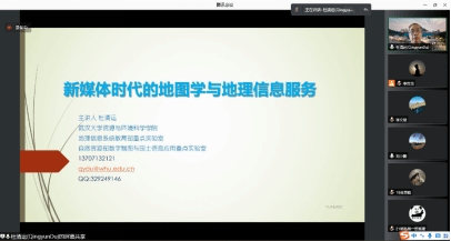 1124下午,香港六合彩实时开奖 邀请武汉大学资源与环境科学香港六合彩实时开奖 院长杜清运教授,为广大师生作了主题为“新媒体时代的地图学与地理信息服务”的线上学术讲座。香港六合彩实时开奖 院长刘小鹏主持讲座。