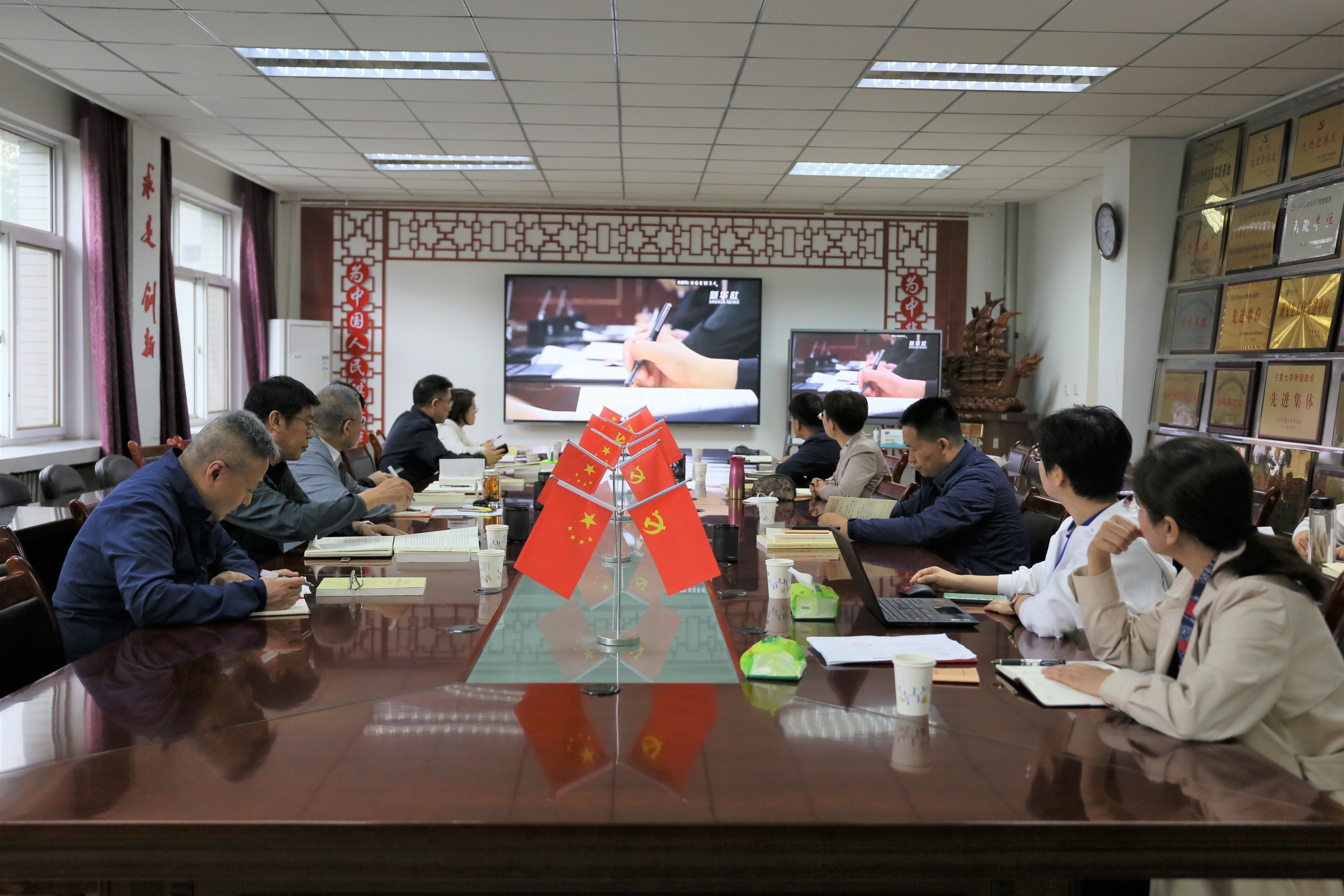 党总支副书记燕宁娜分别领学了《习近平新时代中国特色社会主义思想专题摘编》中的“以自我革命精神推进全面从严治党”和《习近平新时