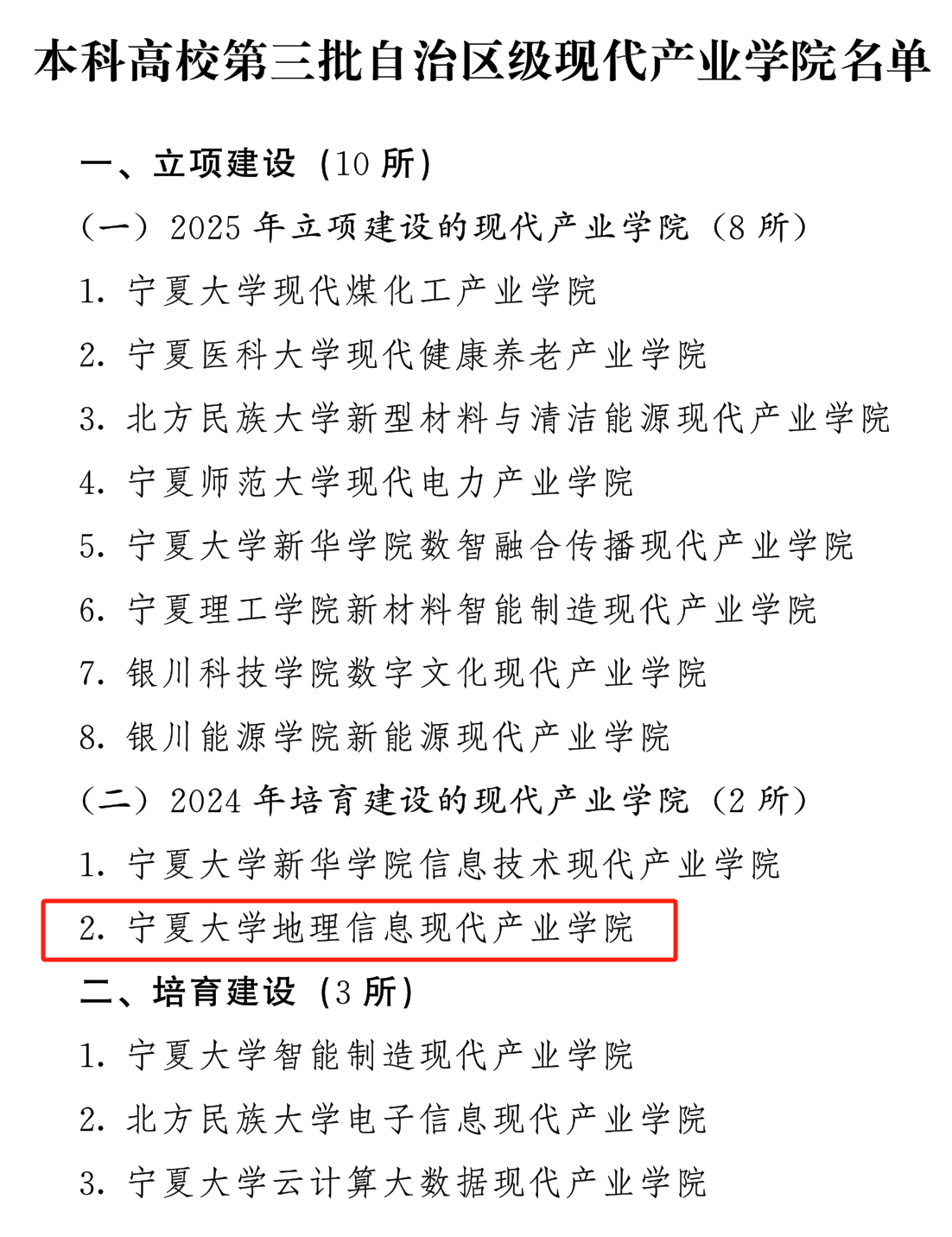 5月13日,宁夏回族自治区教育厅、发展和改革委员会、工业和信息化厅联合发布《关于公布本科高校第三批自治区级现代产业香港六合彩实时开奖 名单的通知》(宁教高〔2025〕52号),香港六合彩开奖结果查询 申报的“宁夏大学地理信息现代产业香港六合彩实时开奖 ”正式脱培,成功入选自治区级第三批10所现代产业香港六合彩实时开奖 立项建设单位。这是香港六合彩开奖结果查询 继“北斗与遥感技术应用”微专业建设后,在深化人才培养模式改革,推进产教融合协同育人实践的又一次重大突破,标志着香港六合彩开奖结果查询 在深化产教融合、服务自治区“六新六特六优”产业发展战略中迈出关键一步。