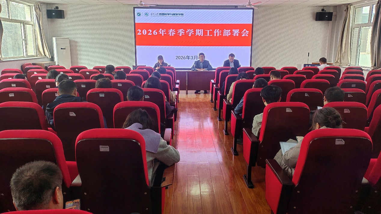 为深入学习贯彻学�2026年工作部署会精神,明确任务、统一思想�3�4日,地理科学与规划学院召开2026年春季学期工作部署会。学院党总支书记陈军胜主持会议并作动员,院长文琦全面部署学院2026年重点工作,副院长李茜安排分管领域工作,学院全体教职工参加会议�