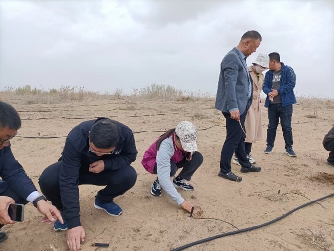 在现场考察过程中,研究团队与保护区专家一同深入项目示范基地,落实2024年度项目实施方案。研究团队详细了解了2023年冬季种植的四翅滨藜的生长情况,并同项目合作单位的研究人员积极探讨项目实施过程中的植物引种、栽培管理及肉苁蓉接种技术等各项环节,为项目的顺利实施打好基础�