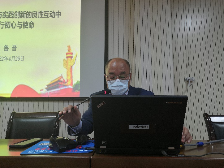 课程开始,鲁晋就中国百年党史轨迹的线索和脉络,从纵向与横向两个方面深刻地阐明了理论创新与实践创新的建党之源。他提到,中国共产党百年历史,经历过孕育的痛楚蹒跚、发展的宛转曲折、壮大的荡气回肠,100载艰苦卓绝、成就了今天的荣耀辉煌。通过理论创新与实践创新,争取民族独立和人民解放、实现了国家富强和人民幸福。他表示,同学们应当认真学习党史初心使命的思想和理论源泉,更要从蕴含着民本思想的优秀传统文化中,继承中华民族的基因骨血。