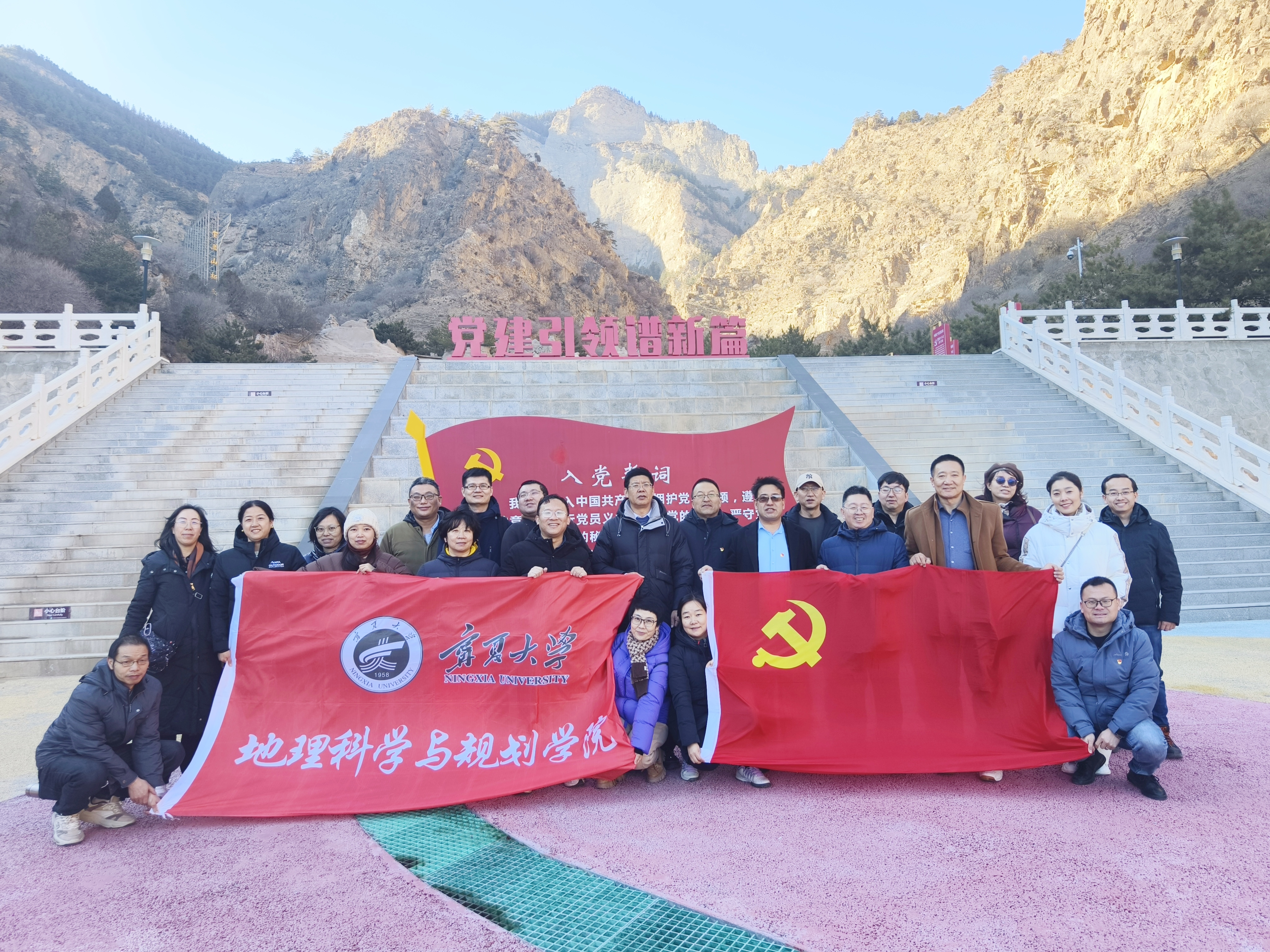 全体党员乘车前往宁夏贺兰山国家森林公园绿水青山里的红色吸引—党建广场,认真聆听了讲解员对中国精神、英模英烈事迹、党风廉政建设和党史的讲解。