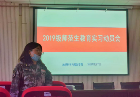 二楼报告厅召开2019级地理科学(教师教育)教育实习动员大会。副院长郑芳、地理科学系主任杨美玲、学生办公室主任常瑞敏、各实习指导教师及2019级地理科学(教师教育)全班同学参加了本次实习动员大会。