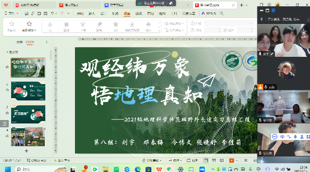 åœ¨çº¿ä¸Šå®žä¹ æ€»ç»“æ±‡æŠ¥ä¸ï¼Œå…«ä¸ªå®žä¹ å°ç»„轮番上阵,总结汇报形å¼å¤šæ ·ã€å†…容丰富,展现出良好的团队å作能力。从å®å¤åˆ°é™•西å†åˆ°å››å·ï¼Œæ¯ä¸€ç‰‡åœŸåœ°éƒ½ç•™ä¸‹äº†åŒå¦ä»¬æŽ¢ç´¢çš„足迹,既有对自然地ç†å¥‡è§‚的惊å¹ï¼Œå¯¹å±±å·æ²³æµå£®ä¸½çš„赞å¹ï¼Œå¯¹åœ°è´¨æž„é€ å¥¥ç§˜çš„æ„Ÿå¹ï¼›ä¹Ÿæœ‰å¯¹äººæ–‡ä¸ŽåŸŽå¸‚地ç†çš„æ´žå¯Ÿï¼Œå¯¹åŸŽå¸‚å»ºè®¾ä¸Žå¯æŒç»å‘å±•çš„æŽ¢è®¨ï¼›æ›´æœ‰å°†æœ¬æ¬¡å®žä¹ æ”¶èŽ·èžå…¥æ•™è‚²å®žè·µçš„奇æ€å¦™æƒ³ï¼Œå±•现了地ç†ä¸“ä¸šçš„æ— é™å¯èƒ½ã€�