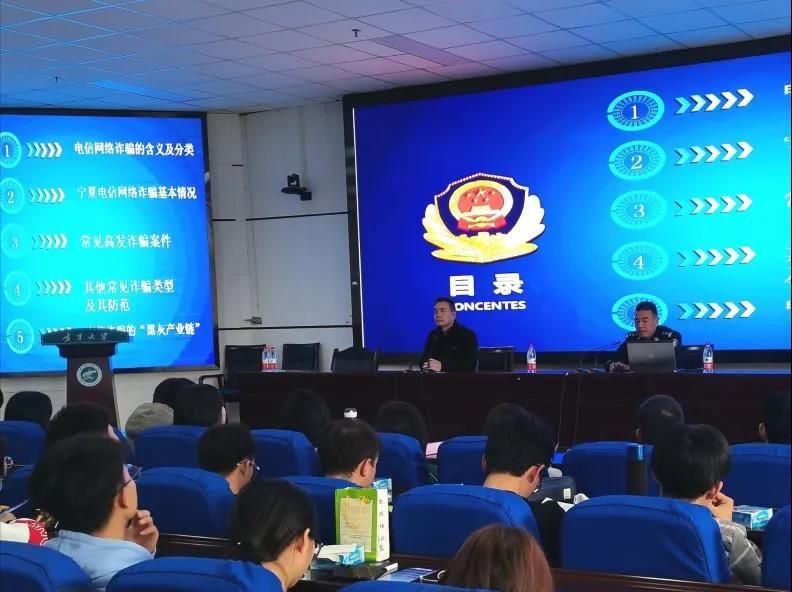 随着大数据时代的发展,电信网络诈骗引起社会的广泛关注。为增强大学生防范电信网络诈骗意识,普及网络安全知识以及强调电信诈骗危害性,宁夏公安厅刑侦总队宁夏反诈中心于2020年11月18日14:10在贺兰山校区文荟楼东报告厅开展以“防范电信网络诈骗”为主题的知识讲座。此次讲座特邀宁夏公安厅刑侦总队反电信网络诈骗中心一级警长杨顺担任主讲人,香港六合彩开奖结果查询