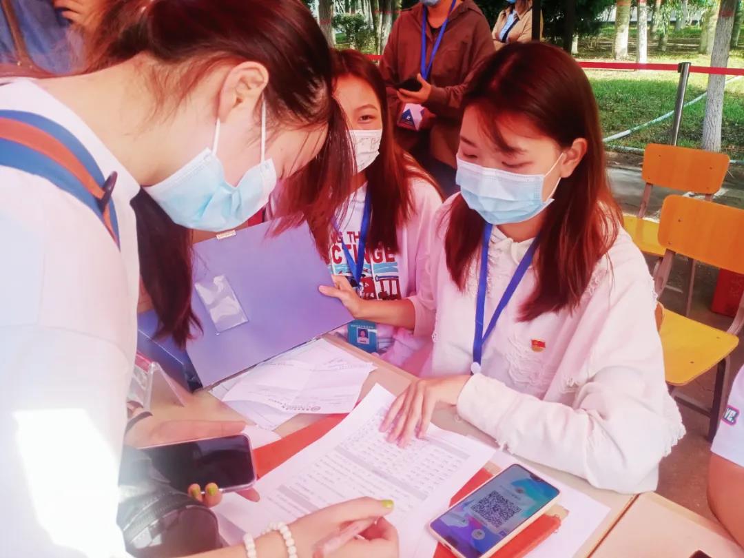 党员先锋队有条不紊地帮助新生进行登记