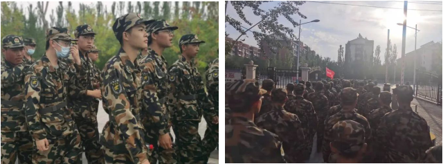 营队以战旗开路。拉练途中,整齐有序、齐步共进,先后进行了防空袭演练、口令传递、穿越染毒地带的军事演练。面对重重考验的“小战士们”在各种模拟训练中临危不乱、冷静应对,他们在警报声中奔跑,在烟雾中突围。在军训拉练中,他们充分展现出了地规学子朝气蓬勃、奋发向上的精神面貌。“巍巍贺兰,蜿蜒六盘,二营三连,坚毅如山”,在高昂热情的口号声中,二营三连的队伍始终向前。